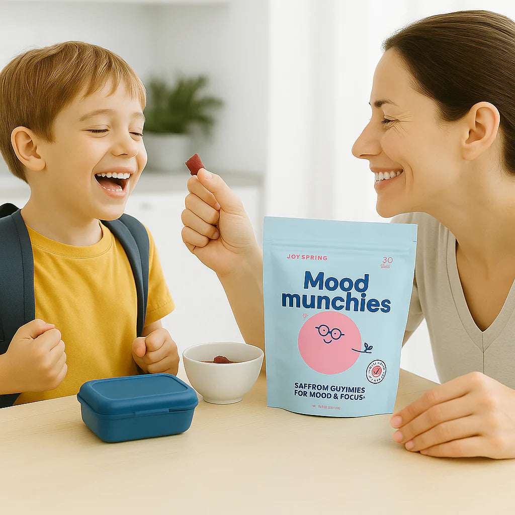 Mood Munchies combina ingredientes naturales cuidadosamente seleccionados para apoyar el bienestar emocional y cognitivo de los chicos. El extracto de azafrán es clave para mejorar el estado de ánimo y reducir la irritabilidad, aportando una sensación de felicidad y calma. La hierba de San Juan ayuda a equilibrar las emociones y brinda claridad mental, mientras que la pasiflora actúa como un calmante natural que disminuye la ansiedad y el nerviosismo sin provocar somnolencia. El GABA, un neurotransmisor natural, favorece la relajación de la mente y reduce la sobreexcitación, ayudando a que los niños se concentren mejor y se sientan más serenos. Finalmente, la vitamina D2 fortalece el desarrollo cerebral y contribuye a un estado de ánimo estable, además de apoyar la salud general. La sinergia de estos ingredientes convierte a Mood Munchies en una solución segura, vegana y efectiva para promover calma, enfoque y un futuro más brillante.